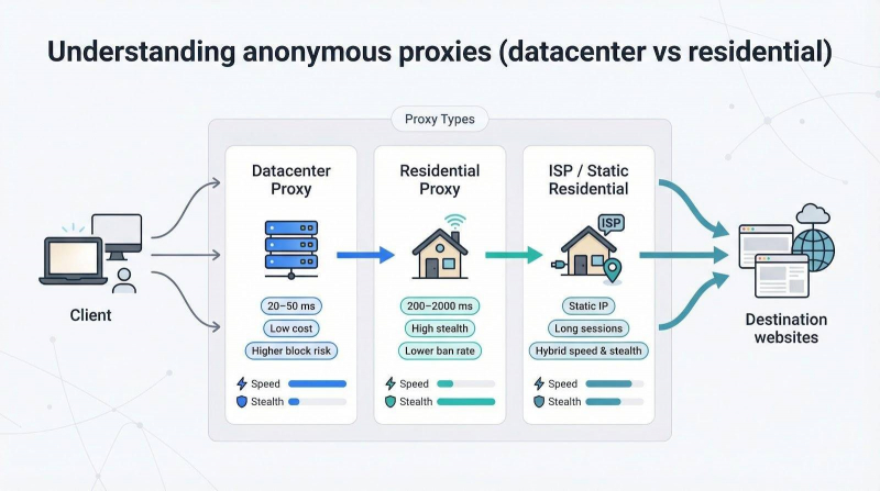 ● Choose datacenter proxies when volume and speed outweigh camouflage.