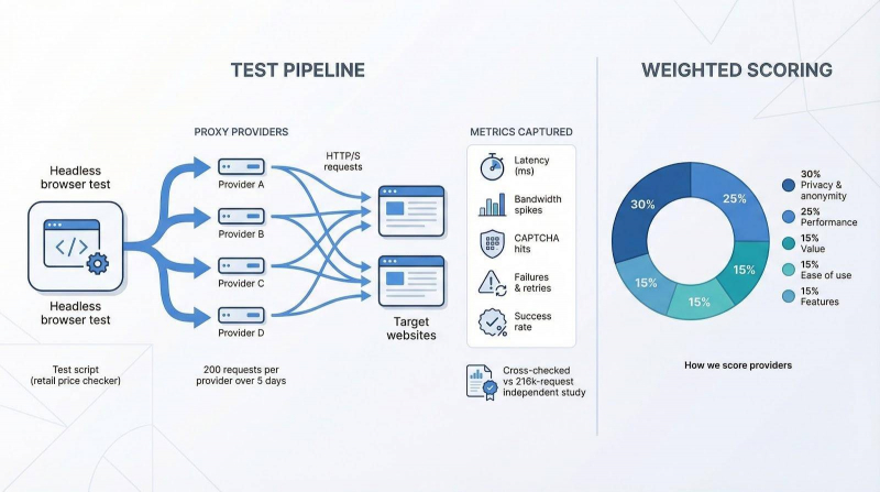 We skipped vendor pitch decks and built our own tests. First, we ran a five-day sprint: 200 requests per provider through a headless browser that acted like a retail-price checker. Each pass tracked latency, bandwidth spikes, and CAPTCHA hits. We noted failures, repeated runs at a different hour, and averaged the numbers.