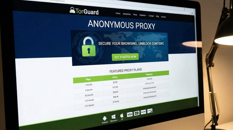 TorGuard Anonymous SOCKS5 Proxy Plan Webpage Screenshot